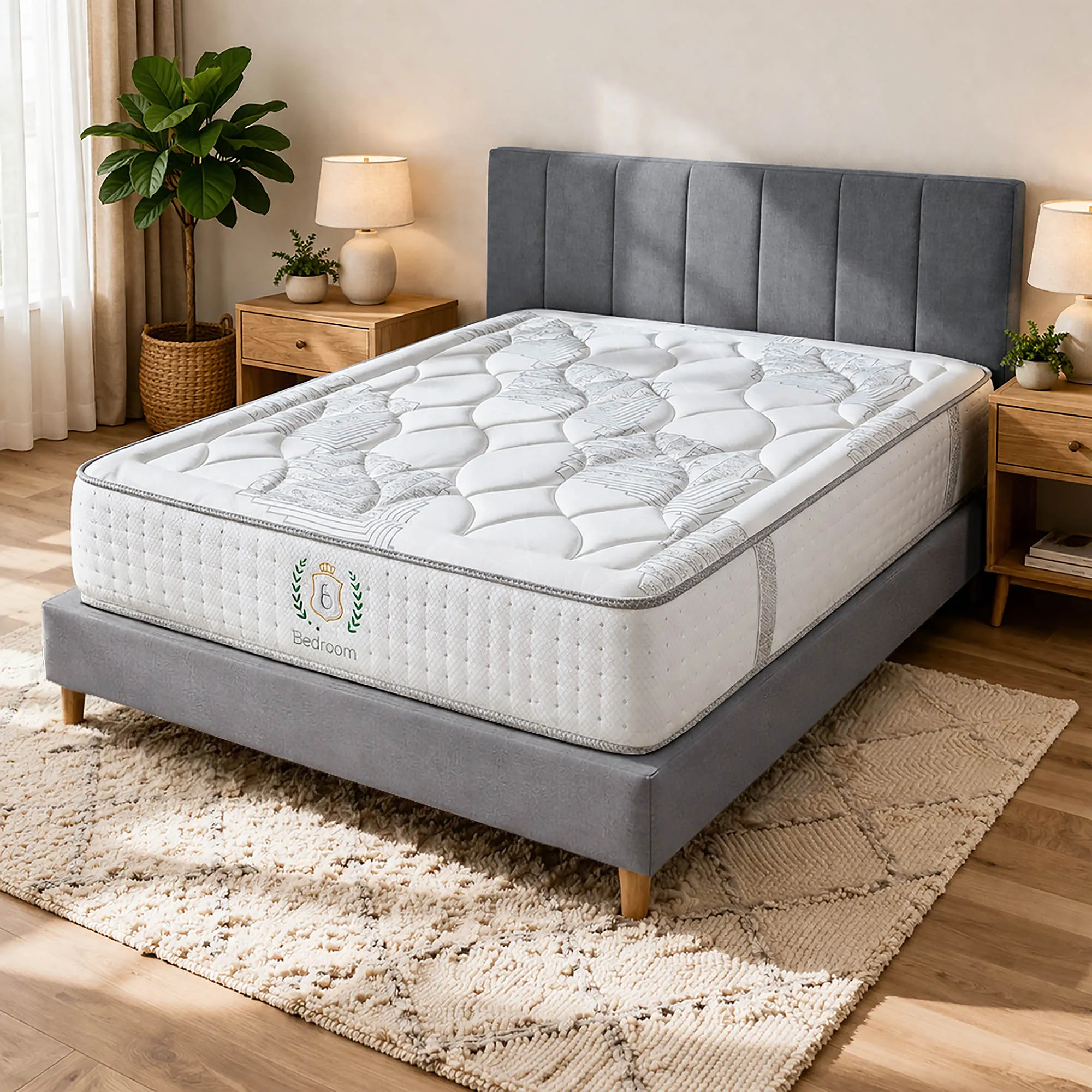 Colchón viscoelástico de muelles ensacados Bedloom, con altura de 30 cm y firmeza media-alta, diseñado para ofrecer confort, estabilidad y una adaptación equilibrada durante todo el año. Su combinación de materiales de calidad proporciona un descanso cómodo, transpirable y duradero, ideal para uso diario.